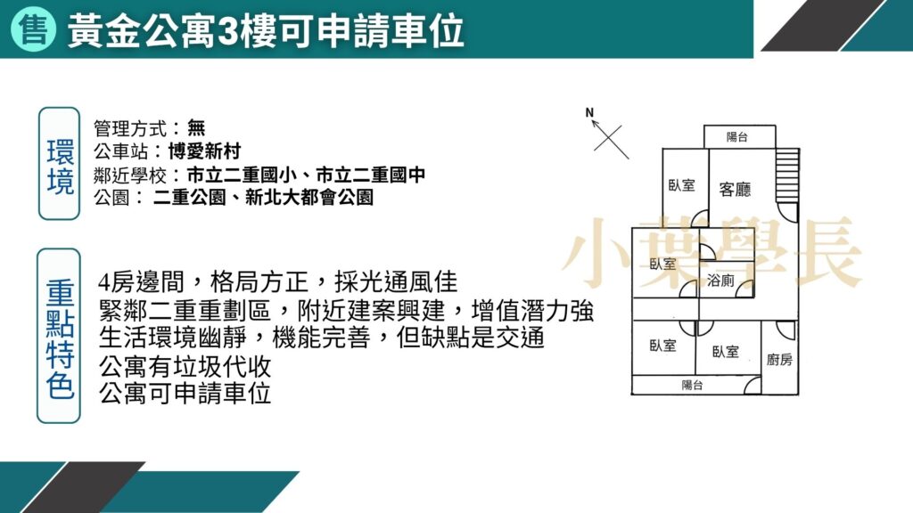 自住與置產皆具前景,是重劃區旁不可多得的大四房選擇